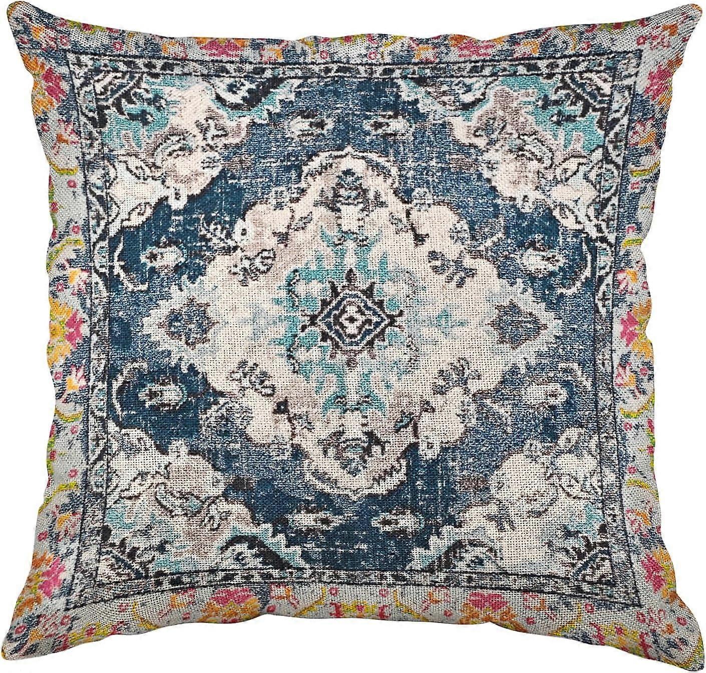 Boho Pillow Covers 18x18 Inch, Blue Vintage Carpet Pattern Throw Pillow Cover Orange Antique Ethnic Decorative Pillow Cases