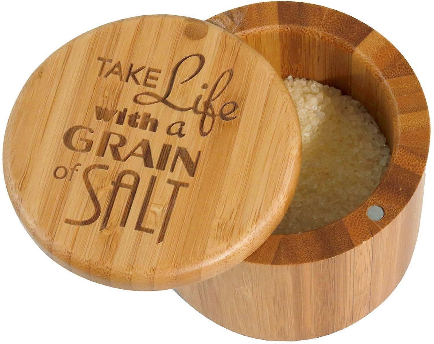 Totally Bamboo Salt Box Bamboo Storage Box, with Magnetic Swivel Lid,"Take Life with a Grain of Salt" Permanently Engraved on Lid
