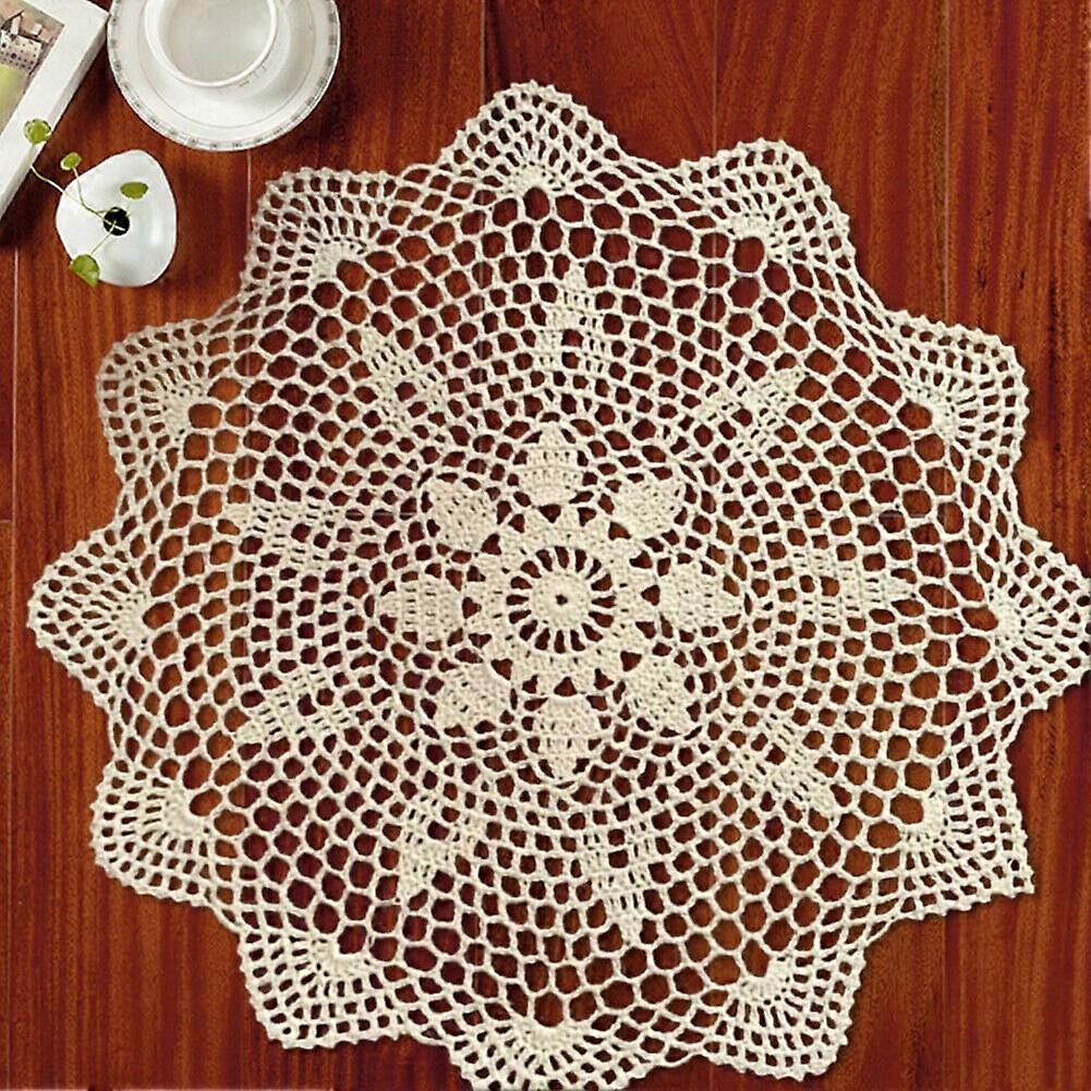 Ruibeauty 16inch Round Lace Table Cloth Flower Tablecloth Vintage Crochet Doily Mats Home Decor,Beige