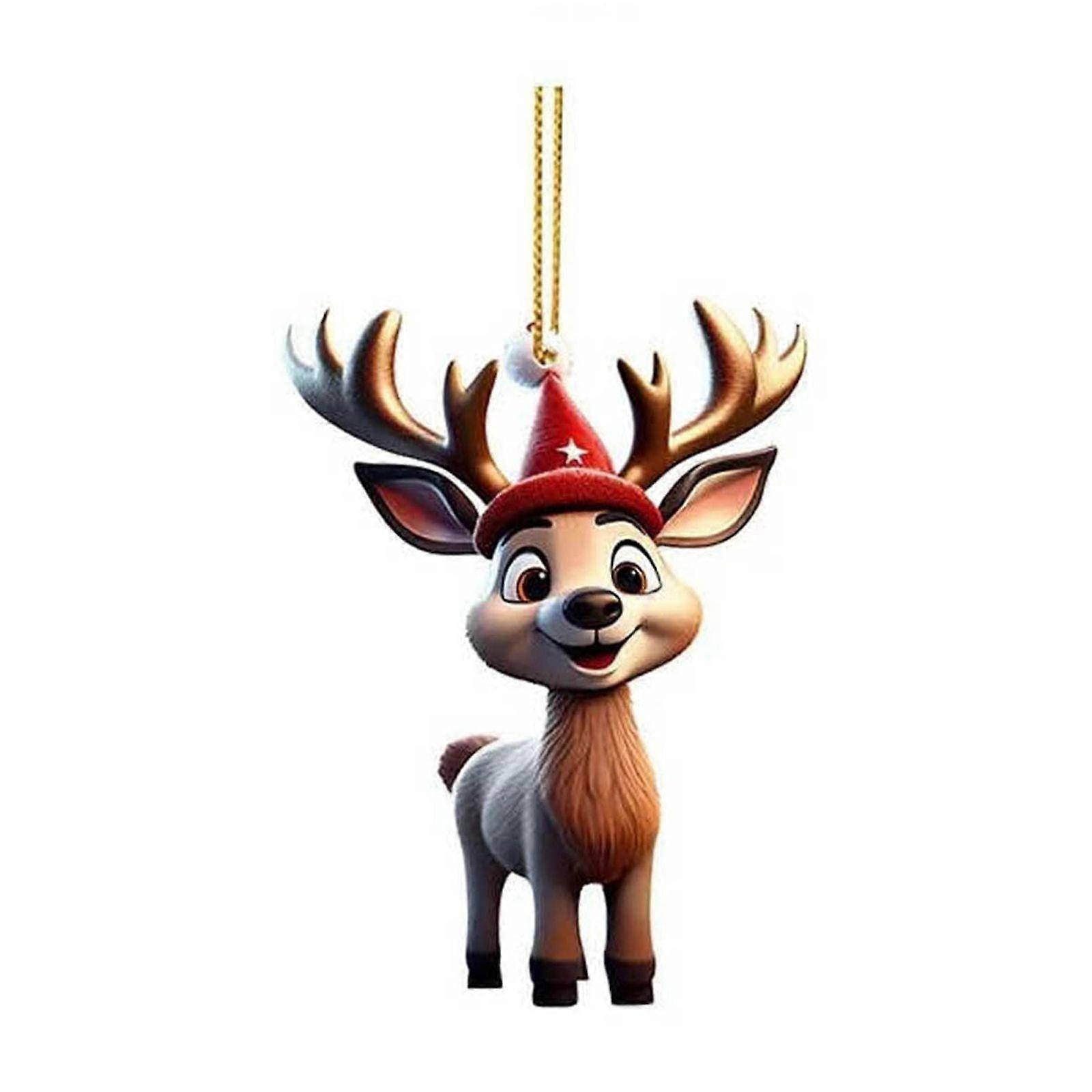 Christmas Reindeer Acrylic Ornaments Set, Cute Cartoon Design, Distressed Style Hanging Decor for Tree, Holiday Indoor Use