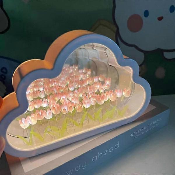 20 Flower Cloud Tulip Mirror Night Light, DIY LED Decoration for Bedroom (Pink) Pink Pink Parent