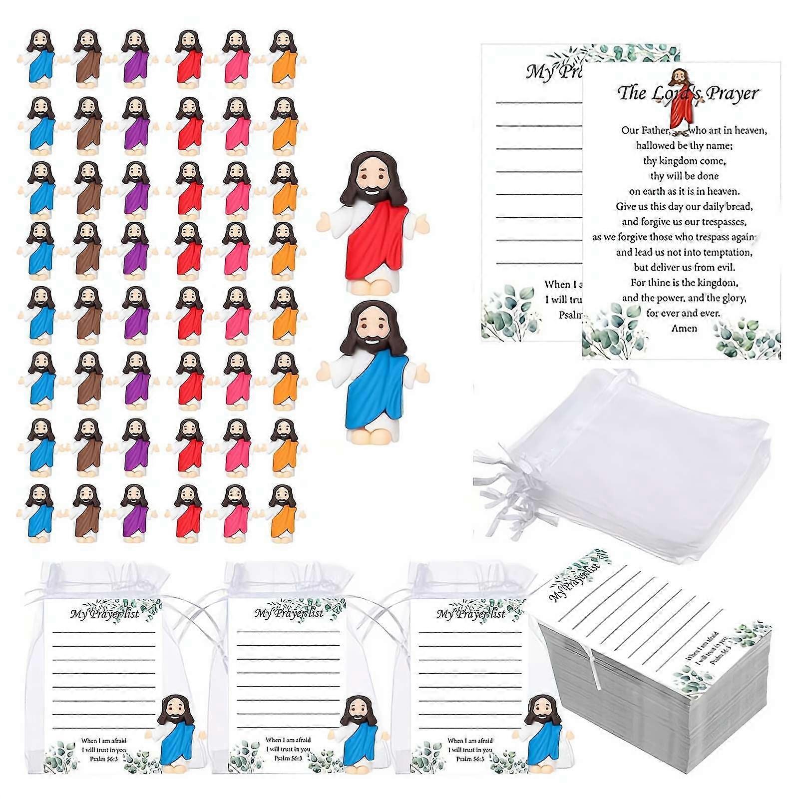 50 Sets Mini Jesus Figurines with 50 Prayer Cards & Bags, compatible with WSRRDRECVHi, for Religious Favors, Sunday School, Baptism Gifts