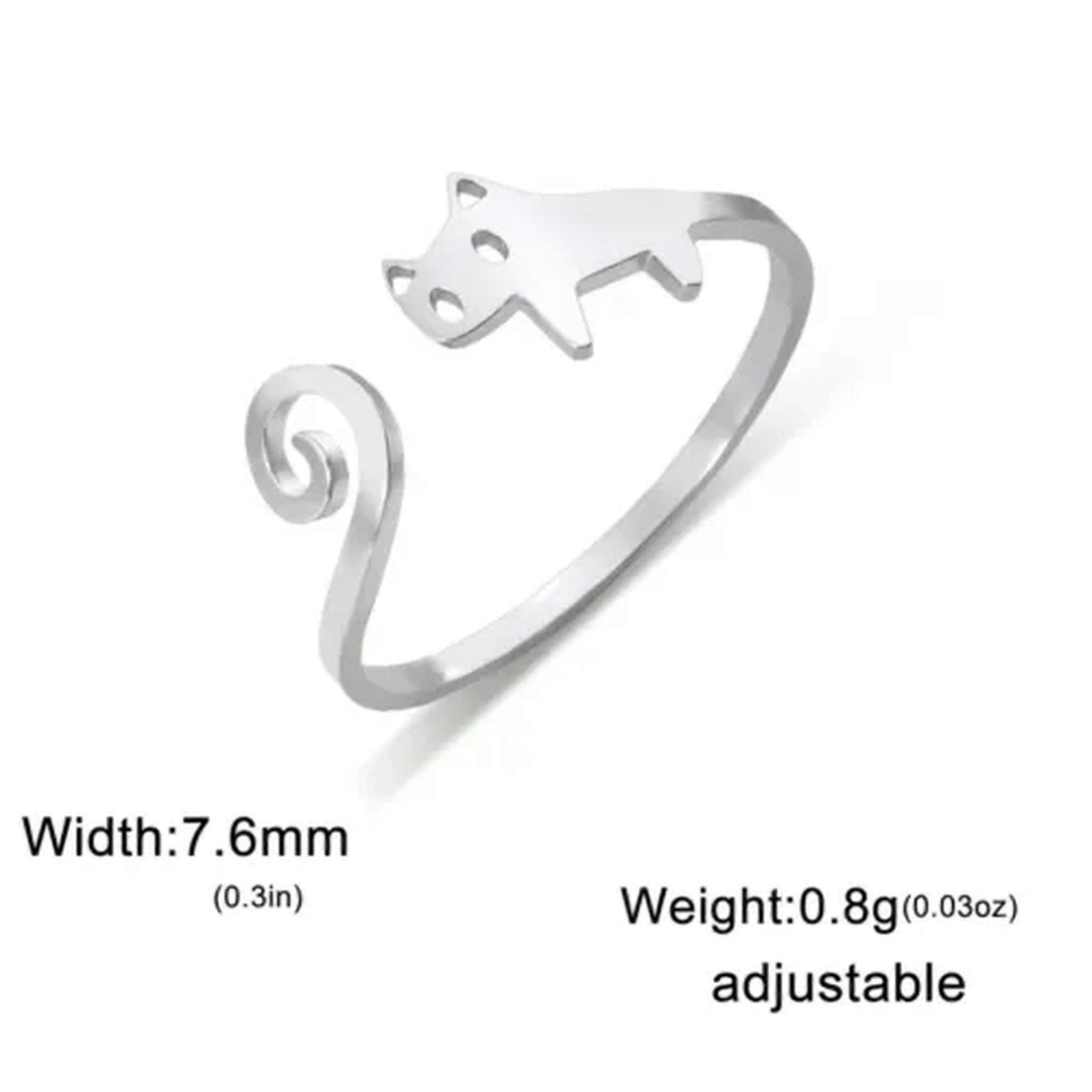 RSAMD Cute Tail Kitten Cat Ring Adjustable Stainless Steel Open Rings Animal Jewelry-Resizable-A steel