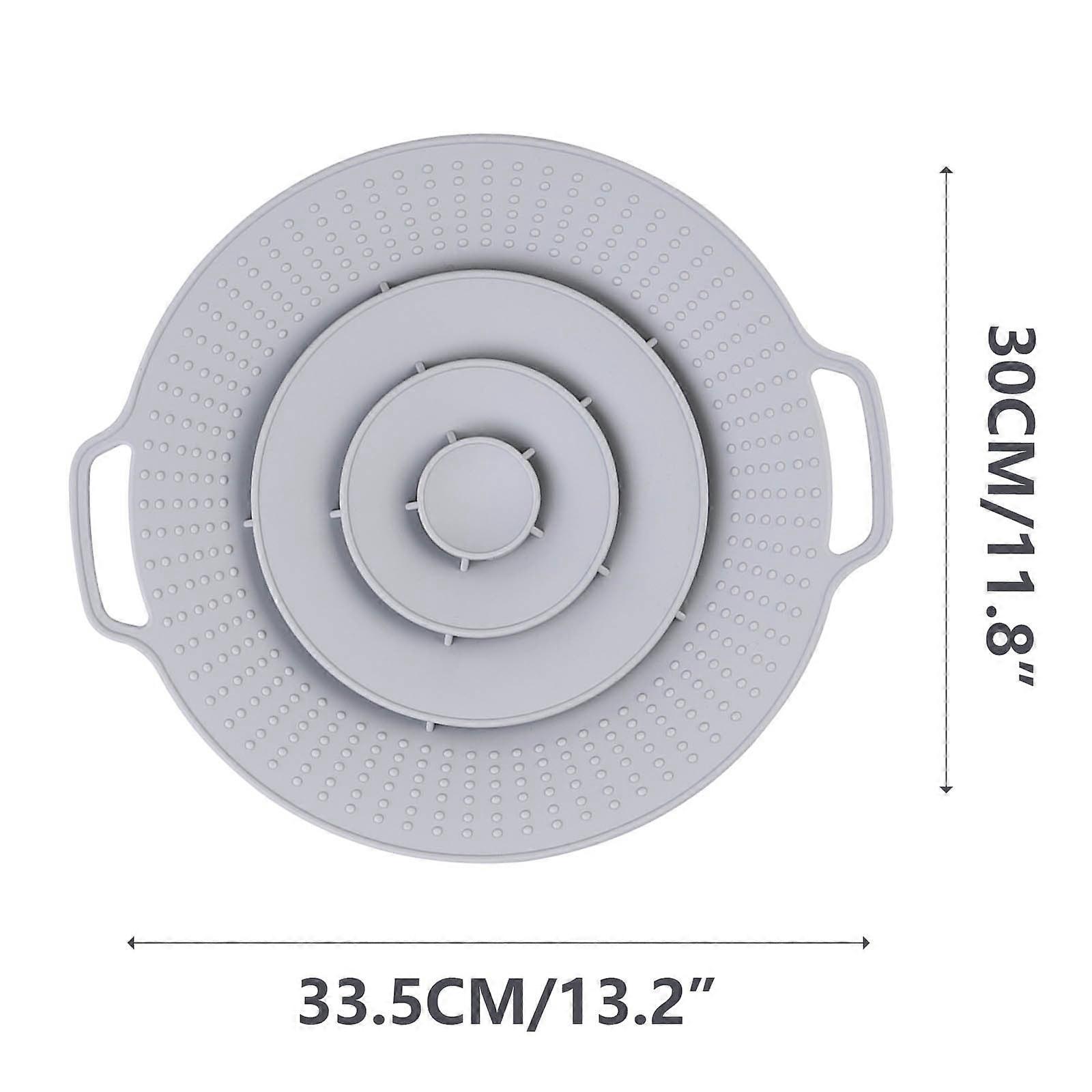 Kiplyki Spill Stopper Lid Cover, Diameter Length Boil Safeguard Lid Cover, Silicone Microwave Splatter Lid for Food, Multi-Function Lid Cover for Kitchen Cooking Product Description: Features: Premium Grade & silica gel - This silica gel Lid Stopper is made of finest silica gel that it is eating fine and hurtless enviroNmental material.And it is soft, persistent, reusable & flexible that will definitely last for a long time even for how many uses. Give You a Safe Kitchen - Do you have problem when boiled liquid spills over the stove and have to spend a lot of time cleaning the stove.For your problems, this is the ultimate solution works for most kind of pots and pans. No worry about cooking pasta, rice or soups.This lid will avoidance boil over from your cooking with pots and pans. Easy Usage & Multi-This Lid Stopper is 13.2" diameters that can fits on any pots & pans with an openings of 6" to 10.5" diameter,We do not recommend using it on pots or other whose diameter is more than 11 inches. You can just set your cooking pot to boil and then walk away without having to worry about over spilling. Heat-avoidance & Dishwasher Safe - Heat-avoidance up to 520℉/270℃. Can be used in a Microwave.This silica gel Lid Stopper are very easy to clean and fresh for daily use. You can simply place it in your dishwasher or wash by hand and let dry. Notes:Due to manual measurements, please allow slight measurement deviations.Due to the different display and lighting effects, the actual color of the item may be slightly different from the color displayed in the picture. Specifications: Material: silica gel. Color: Black/Beige/Green/gray. Product size: 335*300*20mm. Product weight: 300g. Package includes: 1 x silica gel Spill-proof Pot Lid Includes: 1x silica gel spill proof lid. Kiplyki Spill Stopper Lid Cover, Diameter Length Boil Safeguard Lid Cover, Silicone Microwave Splatter Lid for Food, Multi-Function Lid Cover for Kitchen Cooking Product Description: Features: Premium Grade & silica gel - This silica gel Lid Stopper is made of finest silica gel that it is eating fine and hurtless enviroNmental material.And it is soft, persistent, reusable & flexible that will definitely last for a long time even for how many uses. Give You a Safe Kitchen - Do you have problem when boiled liquid spills over the stove and have to spend a lot of time cleaning the stove.For your problems, this is the ultimate solution works for most kind of pots and pans. No worry about cooking pasta, rice or soups.This lid will avoidance boil over from your cooking