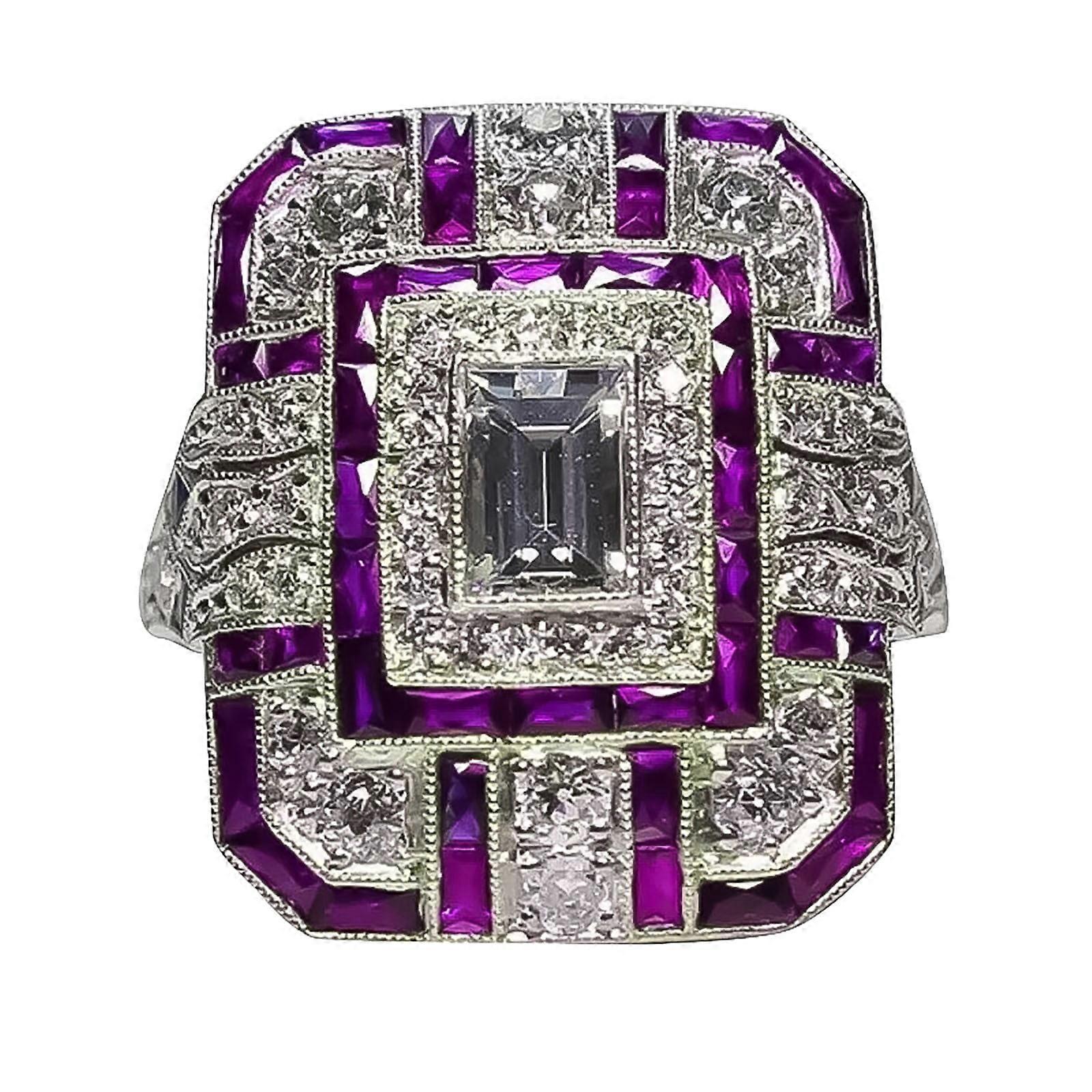 Saving Clearanc! WEANT Antique Art Deco 925 Sterling Silver Sapphire Diamond Ring, Purple, 10