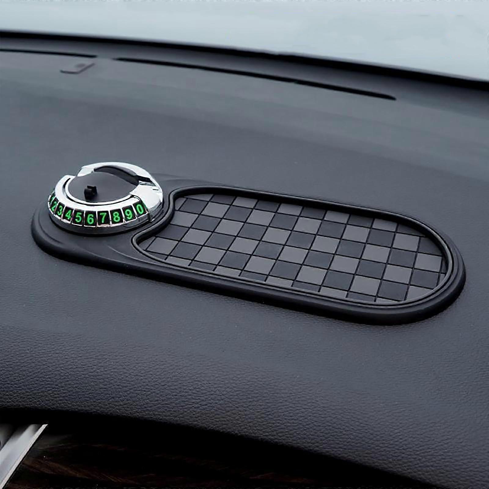 Multifunction Car Anti-Slip Mat with Phone Holder, Rotatable Dashboard Pad Compatible with Universal Devices, Includes Parking Card & Large Storage