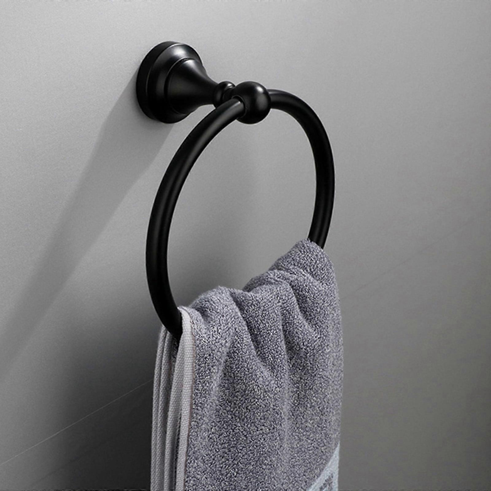 UAEBM Hand Towel Ring, 304 Stainless Steel Wall Mounted Holder for Kitchen & Bathroom, Rust-Proof, Large, Adjustable, Space-Saving Black