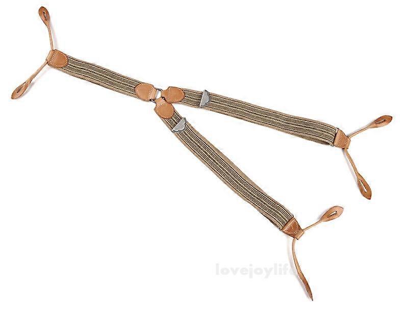 Bronson Men's Vintage Y-Back Genuine Leather Suspenders Khaki Stripes Adjustable