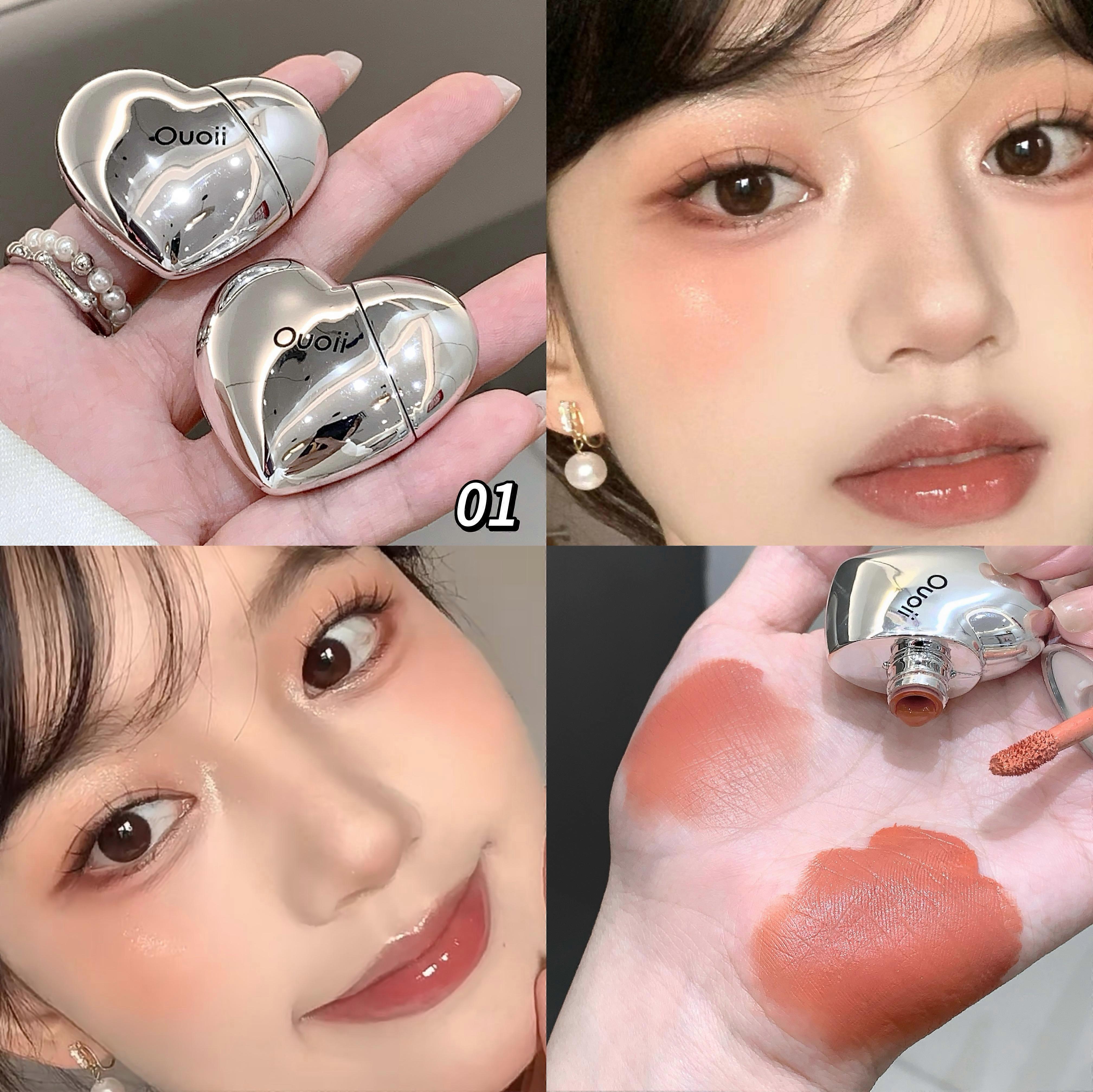 Beautiful Heart Shape Matte Liquid Blush Highly Pigmented Lightweight Long Wear Smooth Cute Silver Mutil-use Blush for Cheeks