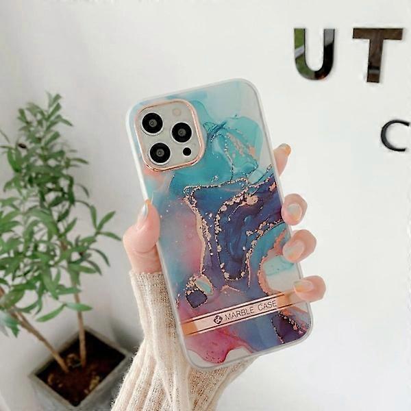 Compatible with iPhone 13, Pro and Max Shockproof Phone Case Elegant Marble and Rose Gold Details Blue 13 Pro Max