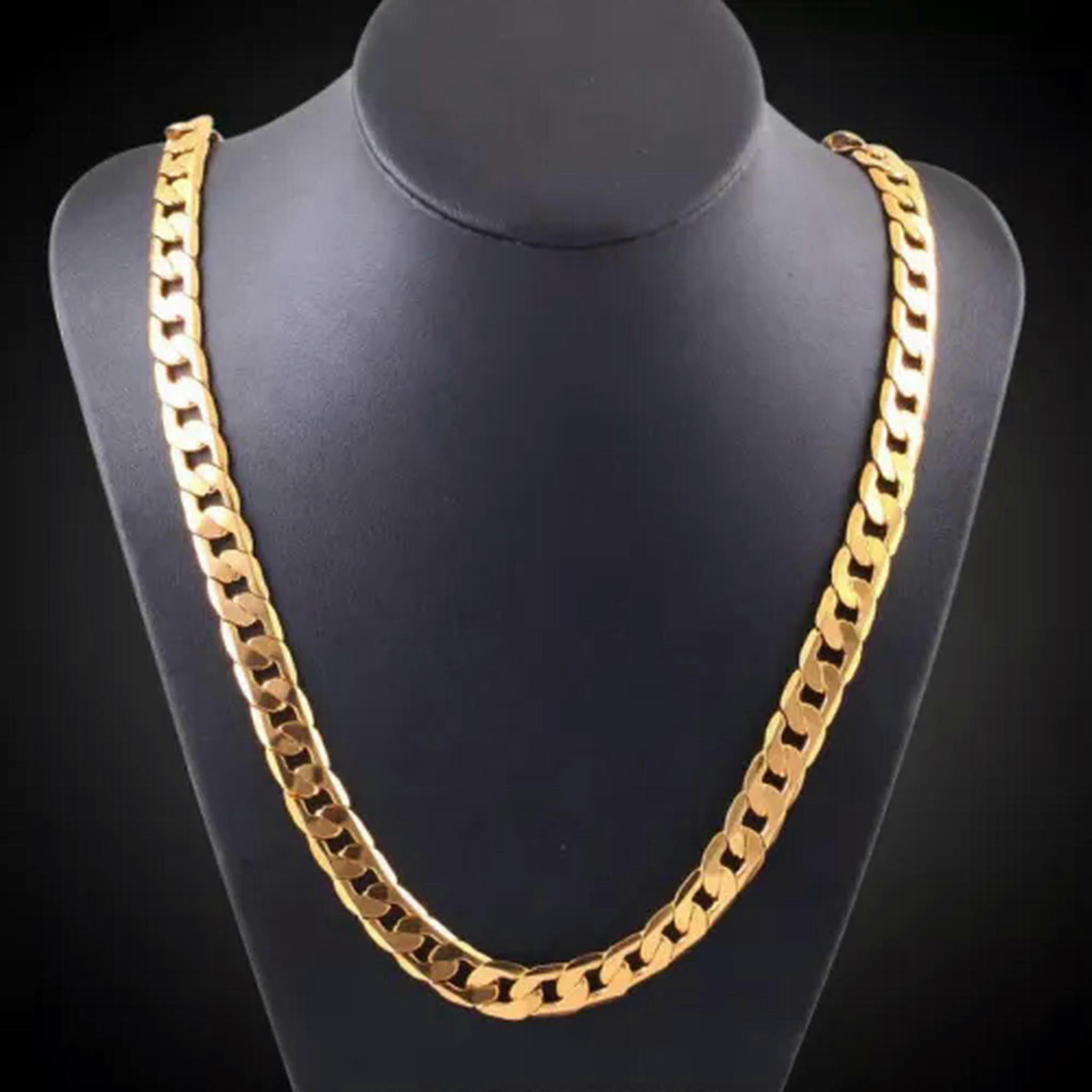 RSAMD Solid Silver 18K gold Color 8MM Necklaces Classic chain for Men women Wedding-45cm-Gold