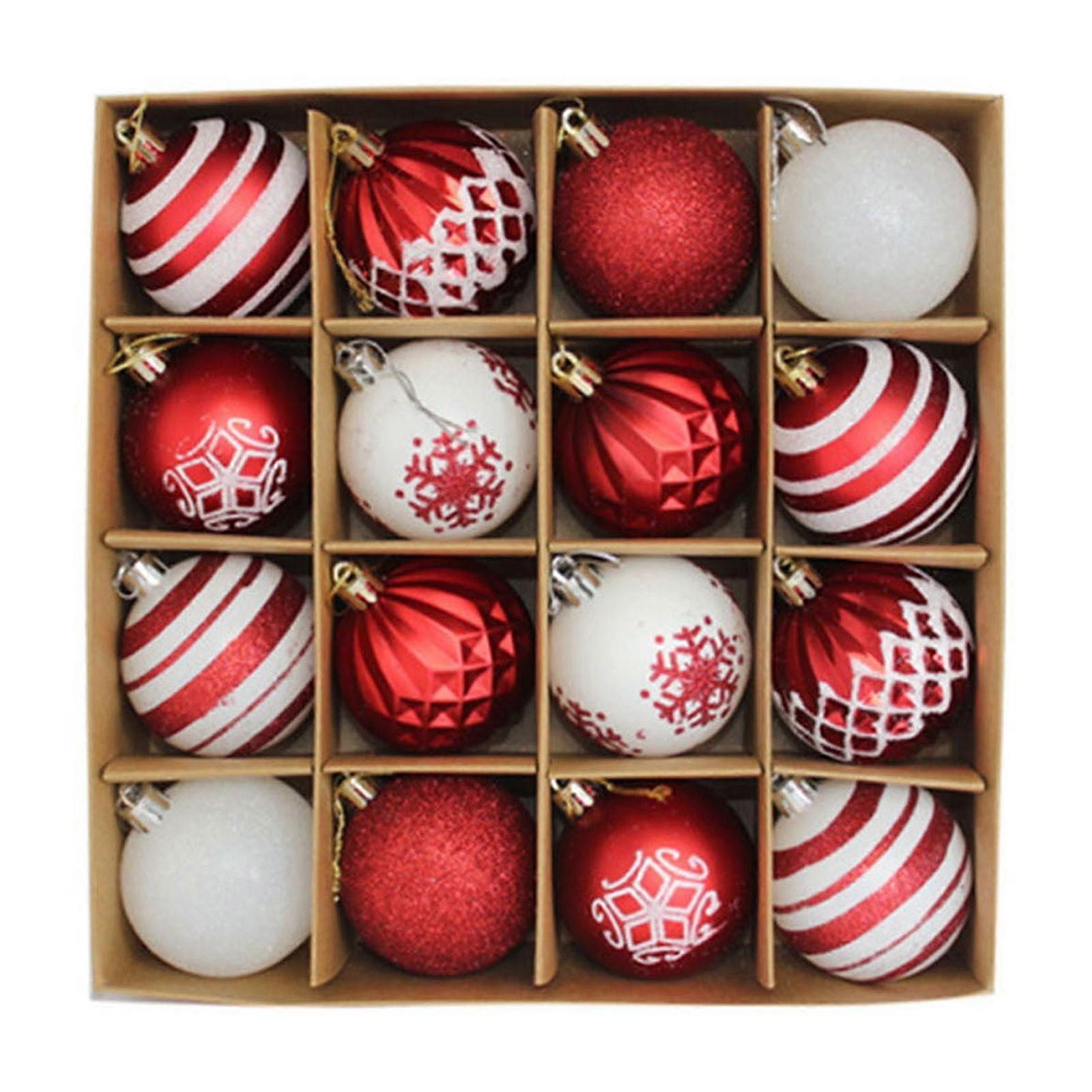 Wadada Christmas Ornaments Set, 16pcs Elf Red White Shatterproof 3.15" Balls, compatible with Christmas tree decor, bulk holiday party decorations