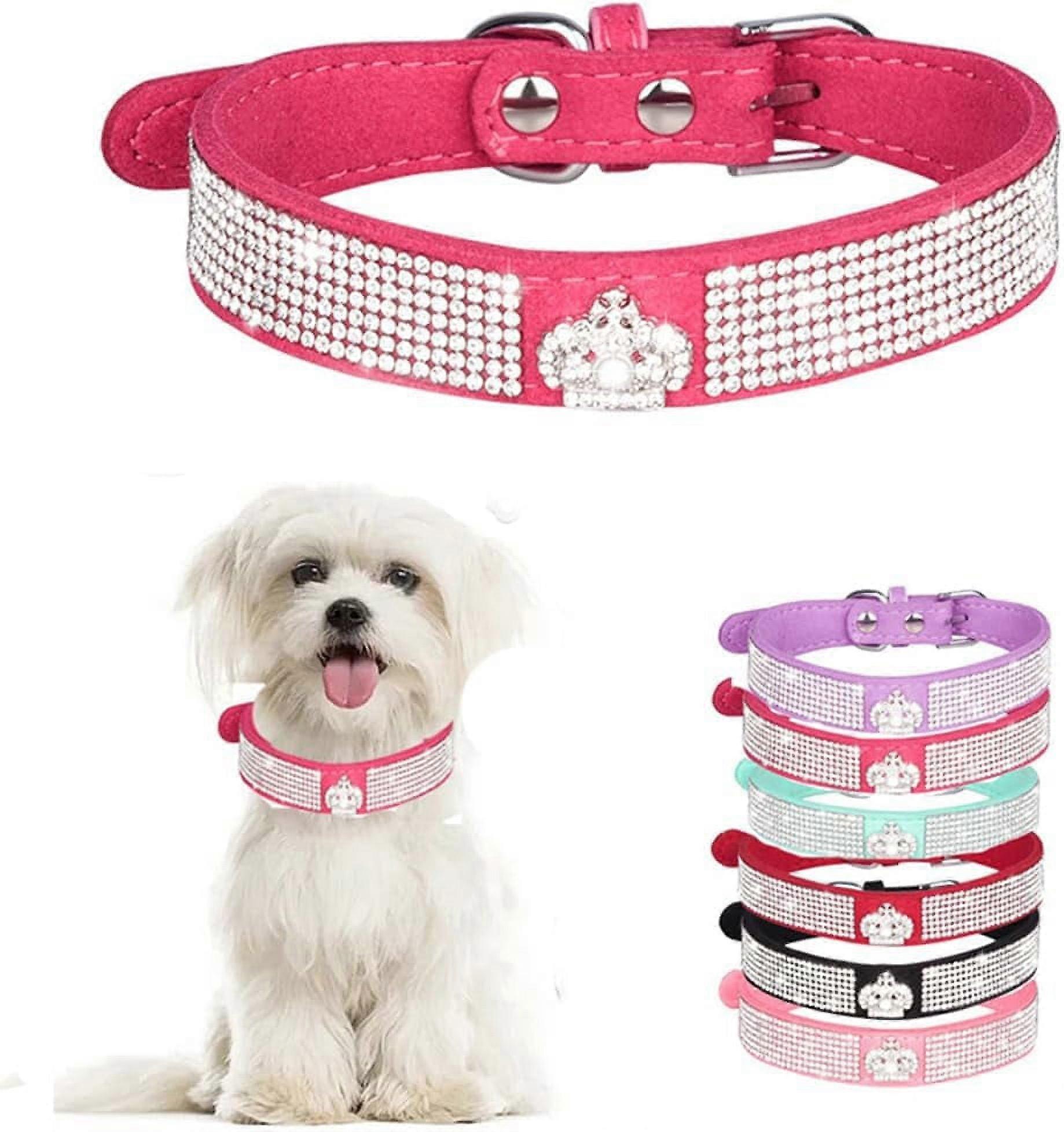 Rhinestone Dog Collar for Small Dogs, Bling Diamond Crown Jewelry, Sparkly Pet Collar for Puppy Cat Kitten, Compatible with XS-S-M Female Dogs