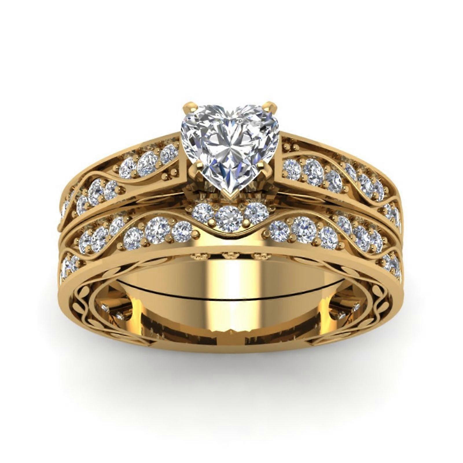Ozmmyan 2-in-1 Full Diamond Fashion Ring Set, Detachable Couple Rings, Gold Jewelry, Valentine's Day Gift (Compatible with None)