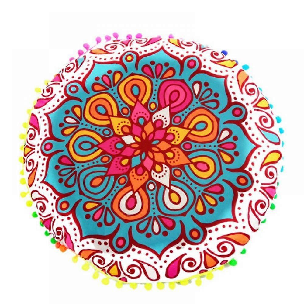 17 Inch Floor Pillars & Cushions, Decorative Hippie Mandala Pouf Pillow for Meditation, Bohemian Throw Cover, Compatible with Round Couch Case