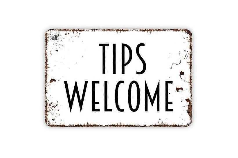 (Aluminum metal) Tips Welcome Sign Metal Sign Farmhouse Contemporary Modern Wall Metal Sign Size: 16 x 12 Inch