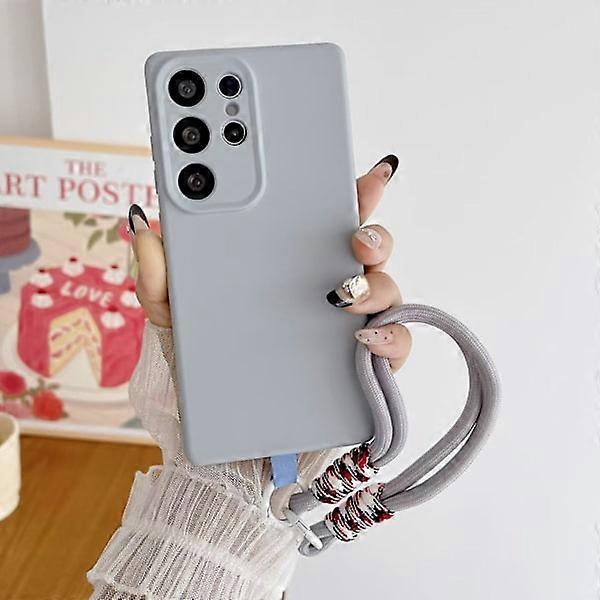 RYI_Wrist Strap Candy Color Soft Silicone Case Lanyard Matte Shockproof Protection Compatible with S22 S24 Ultra Plus Mobile Case Light blue S22