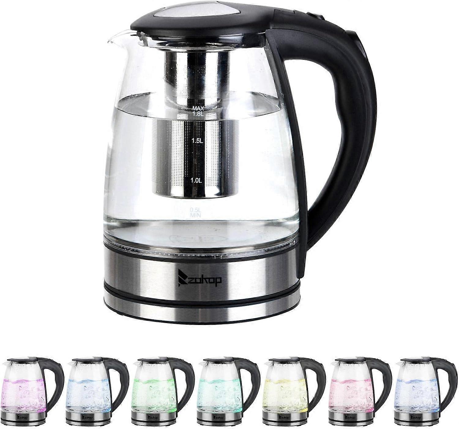American electric kettle with strainer and inner steel cover glass colorful