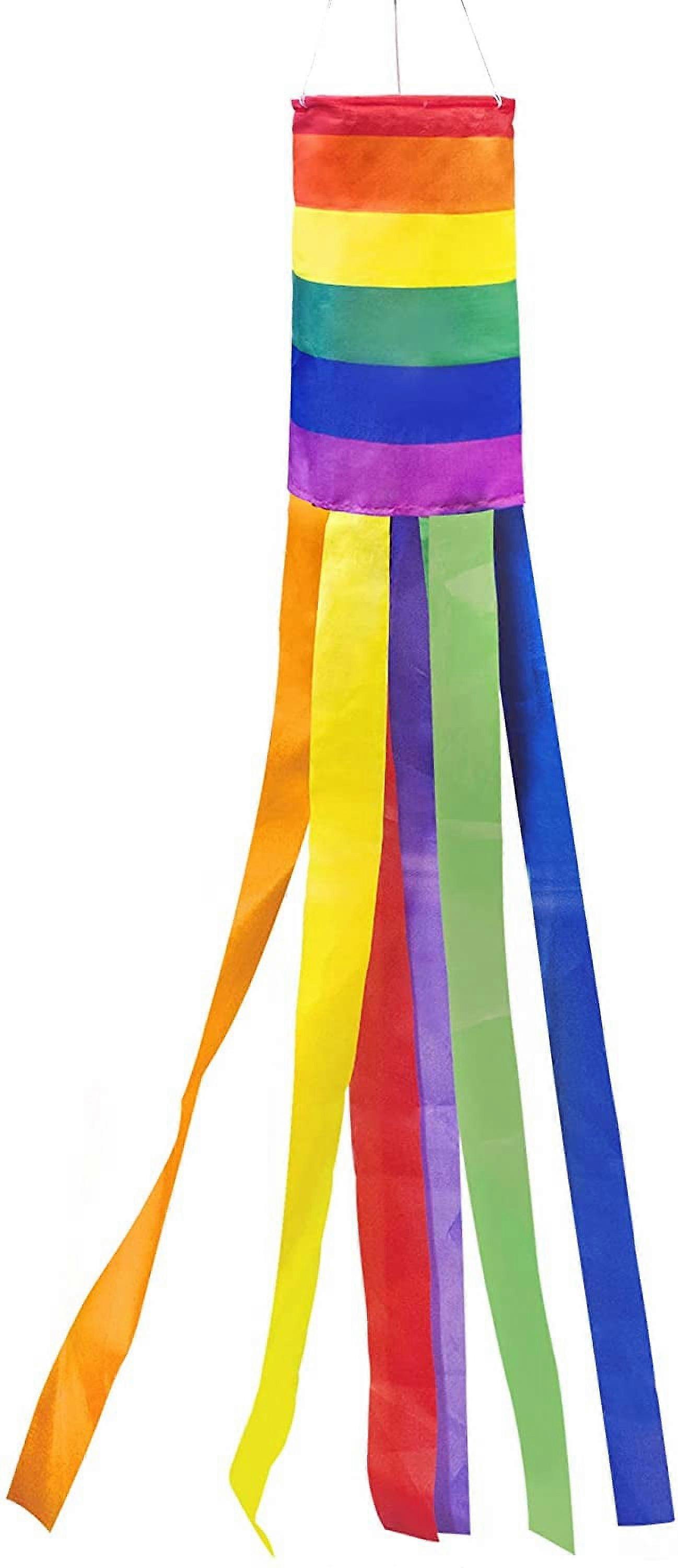 40 Inch Rainbow Column Windsock Flag - Fly in Breeze Outdoor Hanging - Colorful LGBT Parade Garden Decorative Flag with Rainbow Long Tails