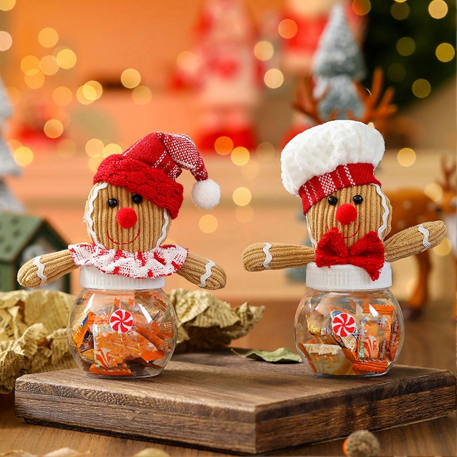 Clinaoy Gingerbread Plastic Candy Jars Cute Cartoon Christmas Candy Box Treat Jar Reusable Holiday Decor for Candy Cookie Goody Tea Storage