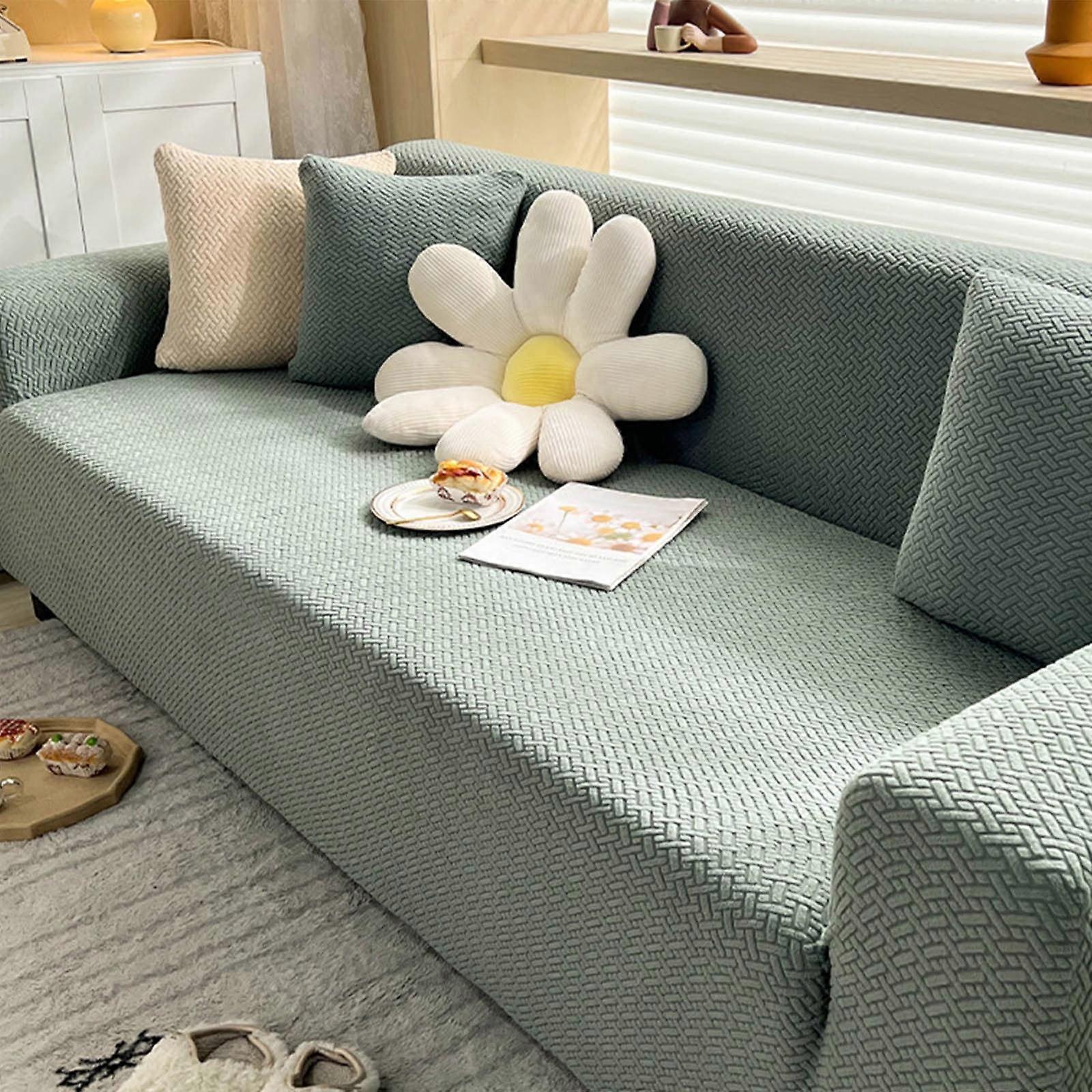 Blukids Super Stretch Couch Cover 3-Seater, 1-Piece Jacquard Spandex Sofa Protector for Dogs, Pet-Friendly Fitted (Green, XL)