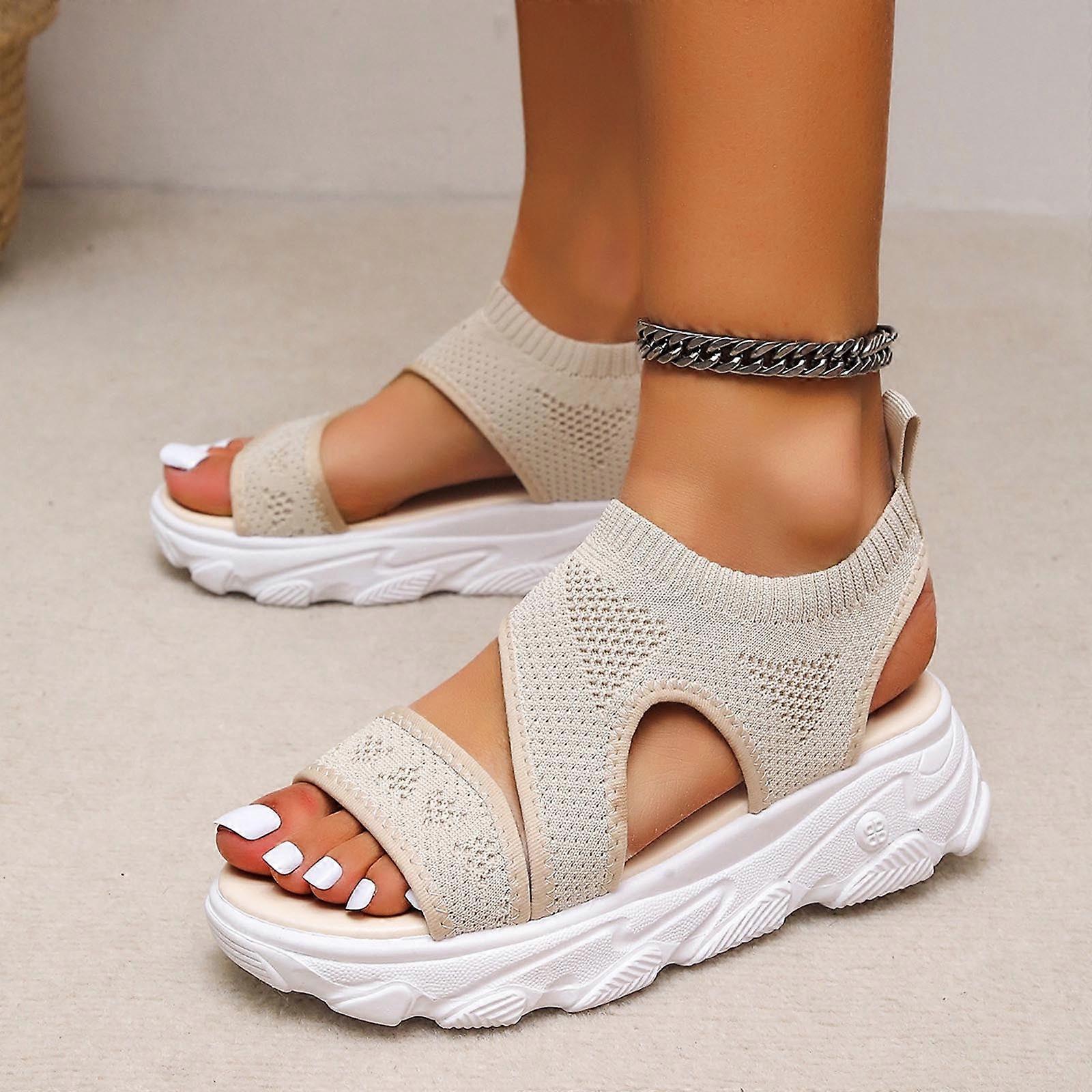 OAVQHLG3B Women's Sandals on New Style Sandals Women's Woven Mesh Flat Beach Shoes Casual Women's Shoes