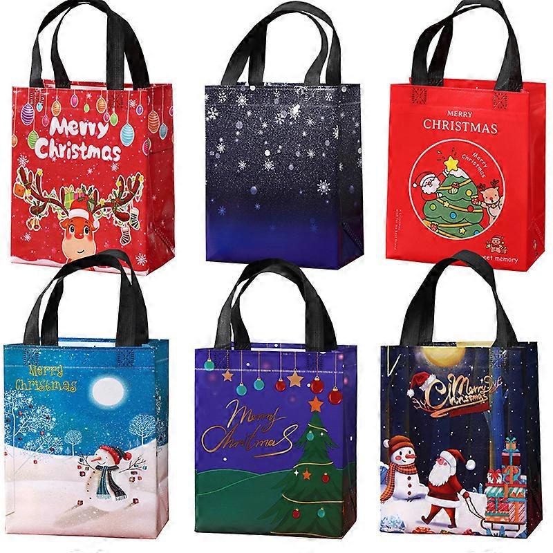 6Pcs Christmas Gift Bags, Reusable Holiday Treat Bags with Handles, Christmas Baskets for Gifts, Non-Woven Xmas Party Supplies