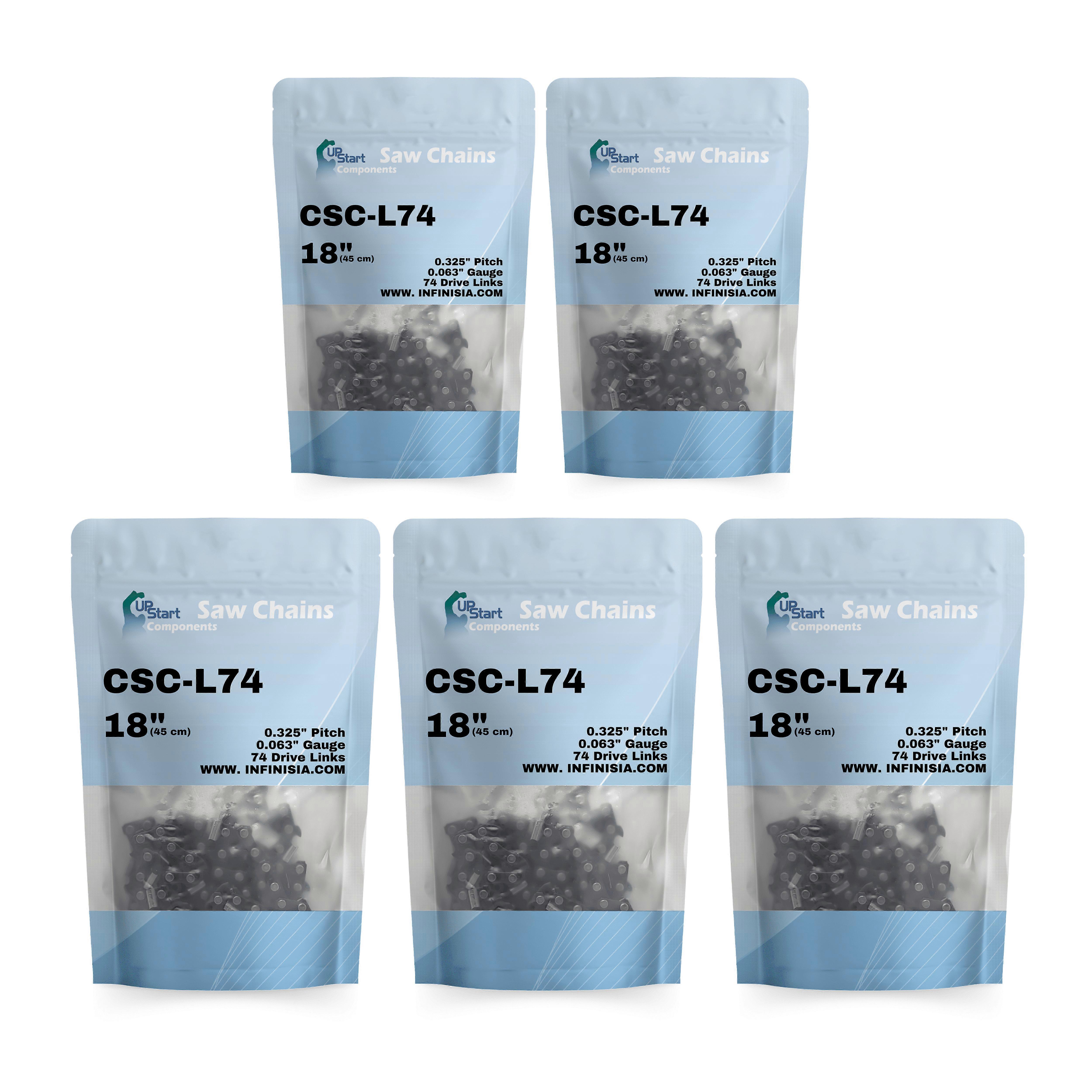 5-Pack 18" Semi Chisel Saw Chain for STIHL MS 261 Chainsaws - (18 inch, 0.325" Pitch, 0.063" Gauge, 74 Drive Links, CSC-L74)
