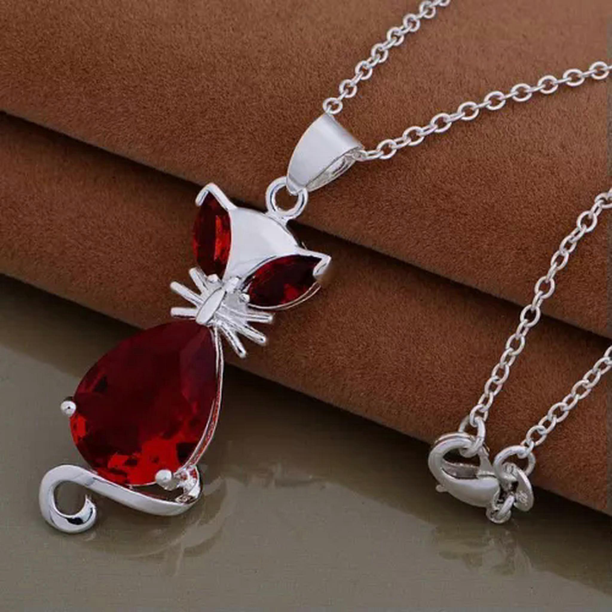 RSAMD charms noble 925 Silver Fashion Crystal Cat Wedding Lady pendant necklace-red AN757