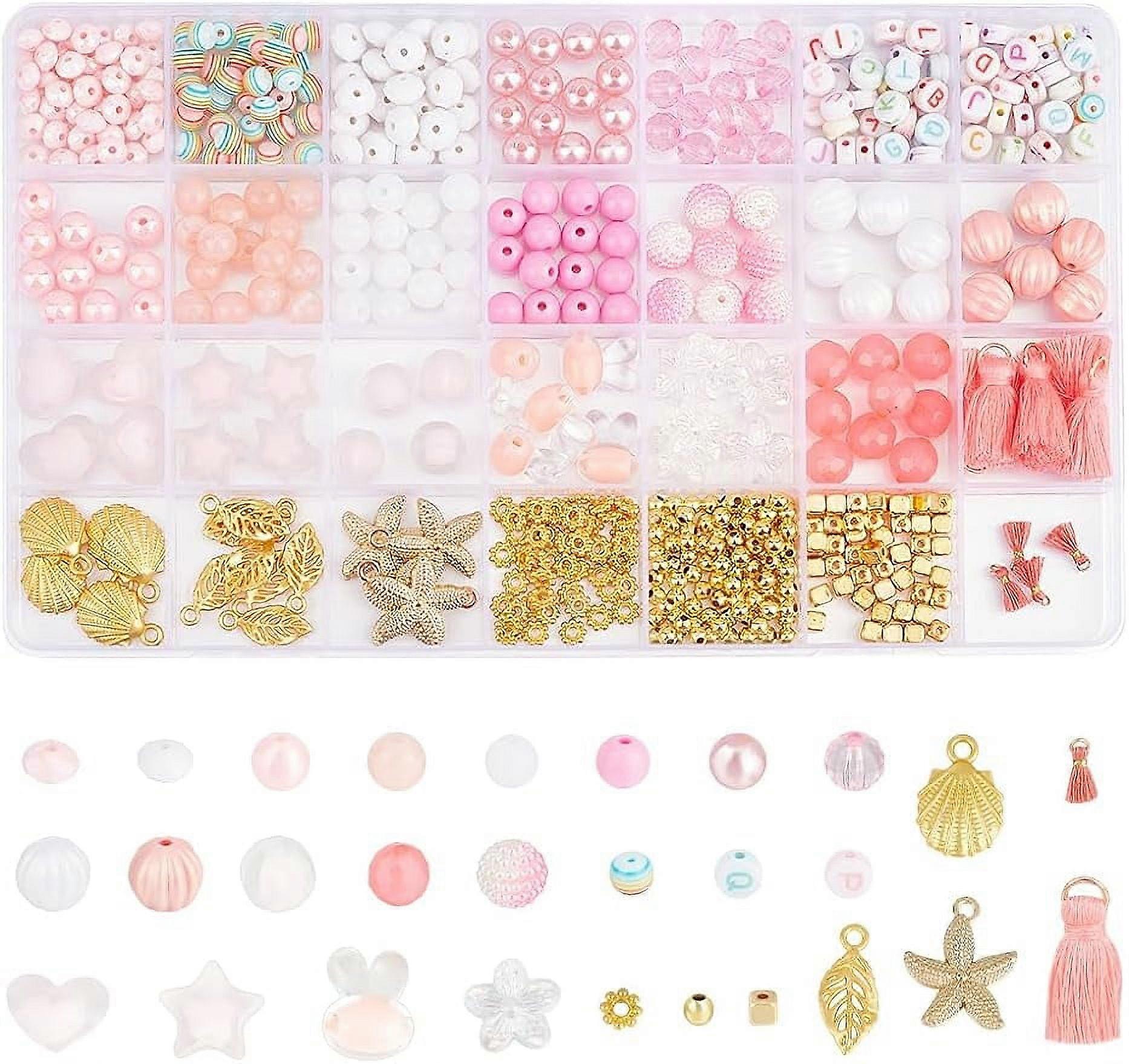 585 Pcs 28 Styles Acrylic Beads Jewelry Making Kit Flower Beads Star Pumpkin Frosted Charms Tassel Pendants Alloy Daisy Spacer Beads Leaves Pendant for Necklace Bracelet Excellent DIY Set -- The whole set of beads has a harmonious and stylish color scheme and comes with spacer beads and tassel charms. The number of beads is large enough that you can use them for a long time. Therefore, it is very convenient to make all kinds of jewelry with just this set Creative Gift -- Beautiful bead set is a perfect gift for people who love handmade jewelry, you can give it to your relatives and friends on holidays and birthdays. It will be a meaningful and delightful gift Complimentary Sorting Organiser -- This set has a large number of beading types that are easy to lose and not easy to store individually. Therefore, we have included a storage box with multiple compartments in the package for easy storage and organization Package Included -- You will receive 585 pcs beads, pendants of 28 styles and a plastic organizer. Please refer to the size picture for exact size Wide Range of Uses -- These charms and beads can be widely used in various crafting projects. You can make them into necklaces, bracelets, earrings, key chains and backpack charms, adding more fun to your daily life