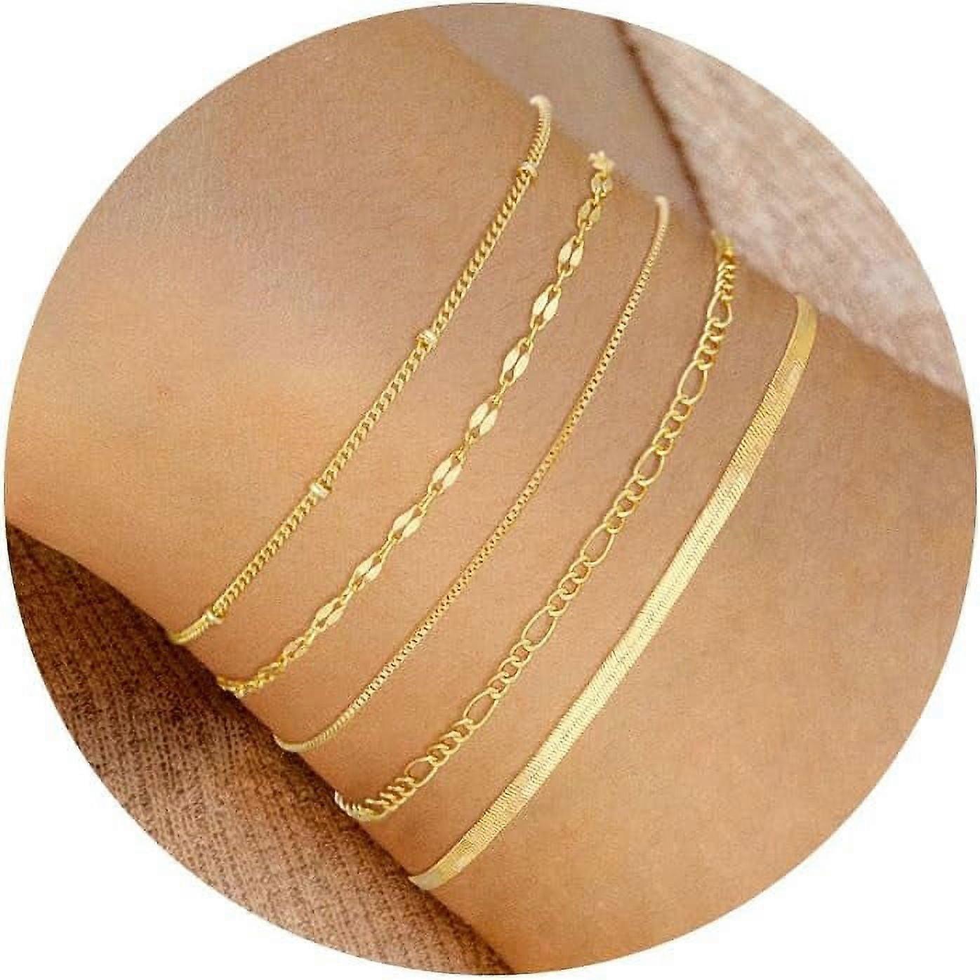 Gold Bracelets for Women, 14K Dainty Gold Plated Stackable Set, Waterproof & Adjustable, Minimalist Tiny Jewelry