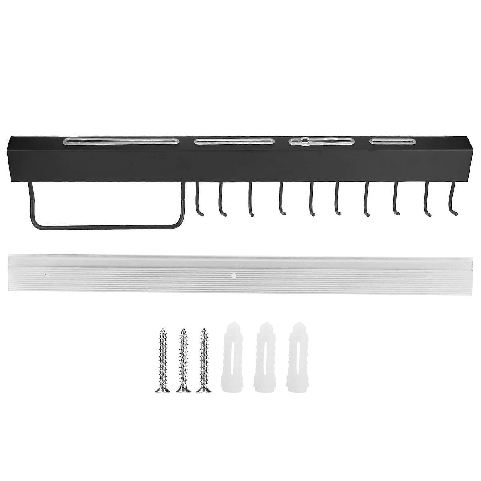 Specification: Condition: 100% Brand New Item Type: Kitchen Rack Material: Stainless Steel Color: Black Surface Craft: Black Painting Varnish Features: Corrosion resistance/rust resistance/strong load-bearing Uses: Shelf/Wall-Mounted Knife Holder Installation Method: Punch installation / can also be installed with nail-free glue Weight: Approx. 790g-900g / 27.9oz-31.7oz Length: Approx. 60cm / 23.6in, 50cm / 19.7in (Optional) 60cm: 4 Knife Position, 10 Hook 50cm: 4 Knife Position, 8 Hook Package List: 1 x Kitchen Rack 1 x Space Aluminum Mounting Plate 3 x Screw 3 x Expansion Nail Note: 1.Please allow 0‑1 inch error due to manual measurement. Thanks for your understanding.2.Monitors are not calibrated same, item color displayed in photos may be showing slightly different from the real object. Please take the real one as standard.3.The striped side is not against the wall during installation. ◆ Selected high‑quality 304 stainless steel material, strong and durable, high hardness. ◆ The surface is smooth, corrosion‑resistant, anti‑oxidation, and has excellent anti‑rust function. ◆ Wall‑mounted installation, cutlery and cooking utensils such as knives, spatulas, scissors, etc. can be stored for easy access. ◆ Sturdy structure, strong bearing capacity, and good ventilation, which can prevent the knife tool from rusting. ◆ With mounting screws accessories, it is suitable for home kitchen use and can keep your kitchen organized.