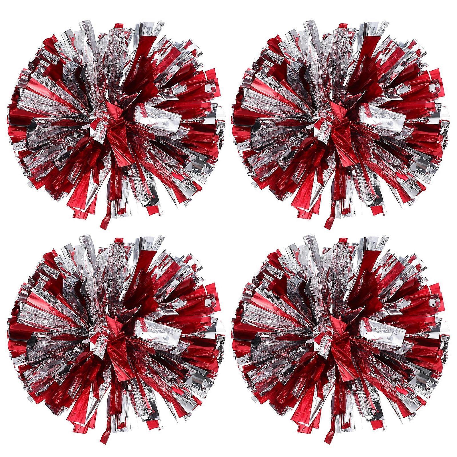 Red Metallic Cheer Pom Poms for Kids & Adults - 4 Pcs