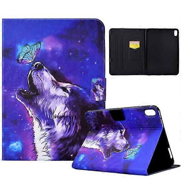 Compatible with iPad 11 11th Gen / 10.9 10th Gen 2022/2025 Case - Electric Pressed TPU Smart Leather Case Butterfly Wolf
