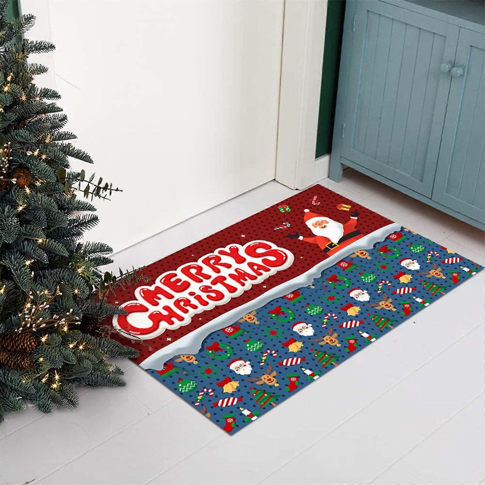 Door Mat Indoor Non Slip Entrance Rug Rubber Backing Low-Profile Absorbent Dirt Resistant Red Christmas Floor Mat 50x80cm