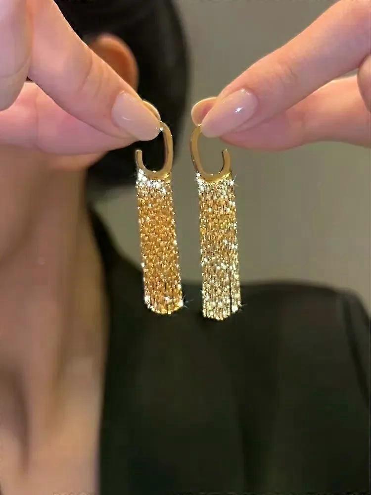 New Fashion Trend Unique Design Elegant Exquisite Long Tassel Golden Earrings for Women Wedding Daily Party Jewelry Aros Mujer