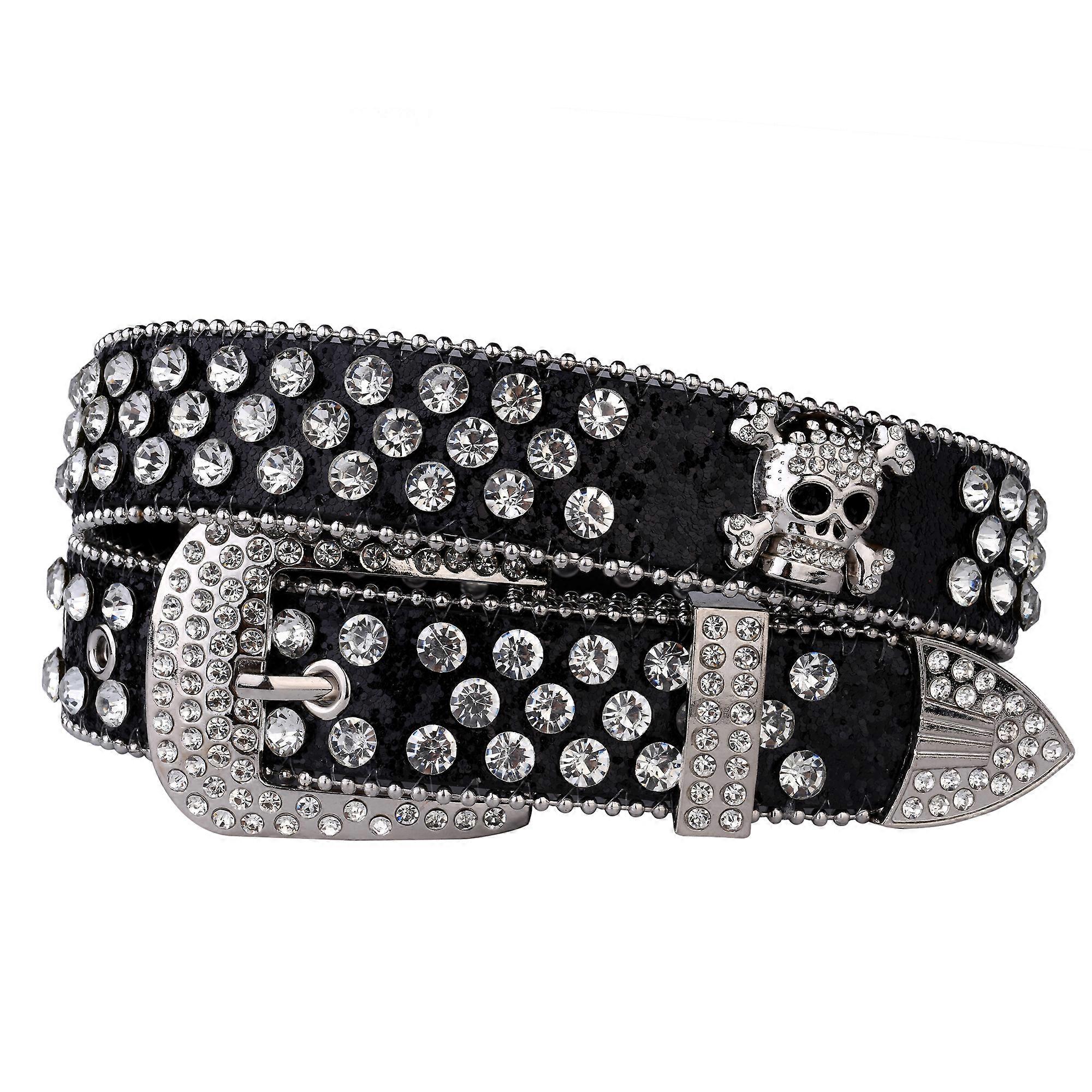 Rhinestone SkullBelt Western Cowgirl Belts For Women Girls Studded PU Leather Country Belt