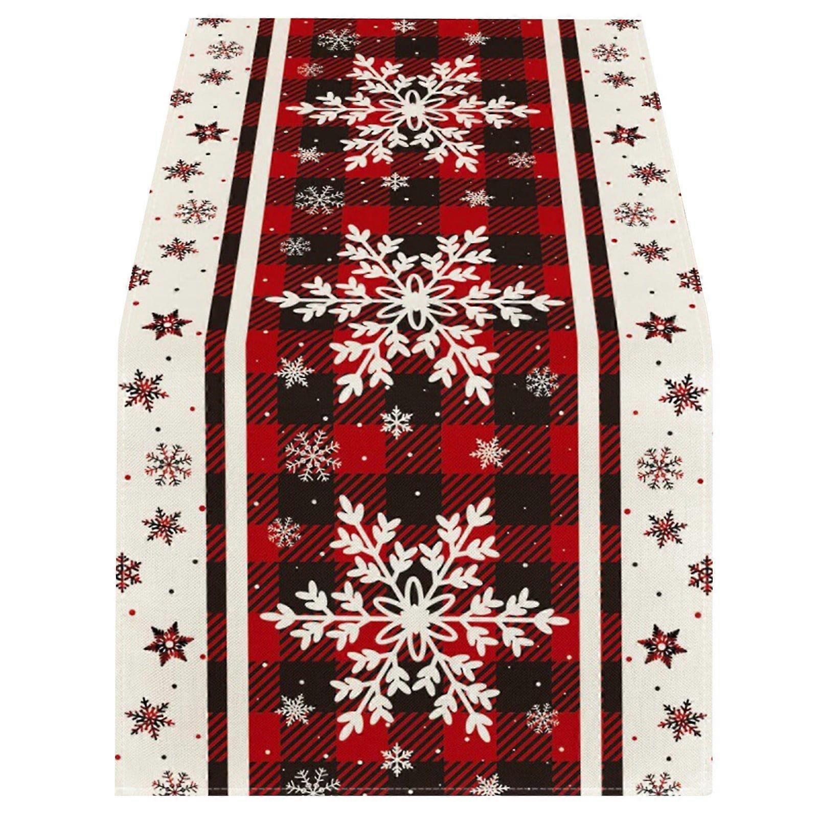2025 & CISIL - Checkered Snowflake Christmas Table Runner, Seasonal Winter Kitchen Table Decoration, Suitable For Home Party Decoration