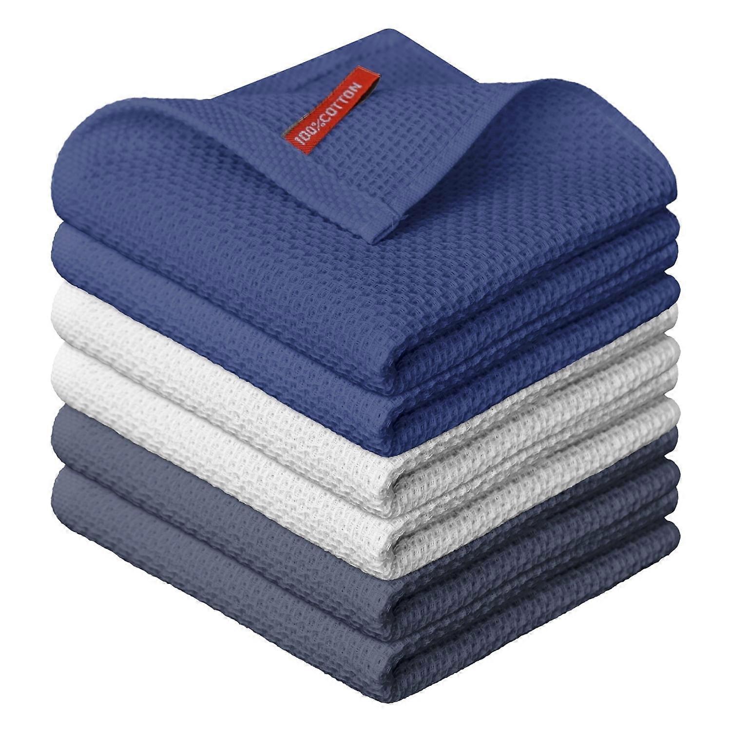 Sm:)e 100% Cotton Waffle Dishcloth, Nave Blue and Grey, 6 Pack Soft Absorbent Quick Dry Kitchen Cleaning Towels 12x12 Inch