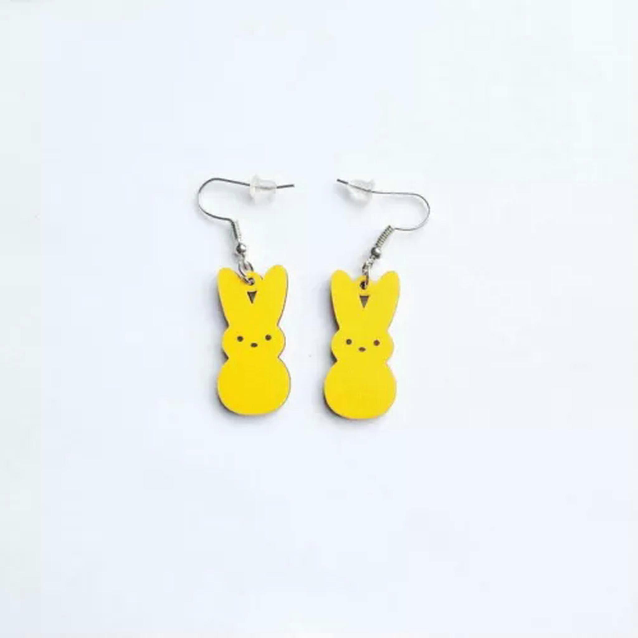 RSAMD Wooden Print Rabbit Dangle Earrings for Girls 2023 Easter Day Holiday Jewelry-Yellow