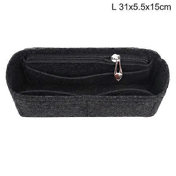 Multi-Pocket Women Insert Bag Handbag in Felt Fabric Black L