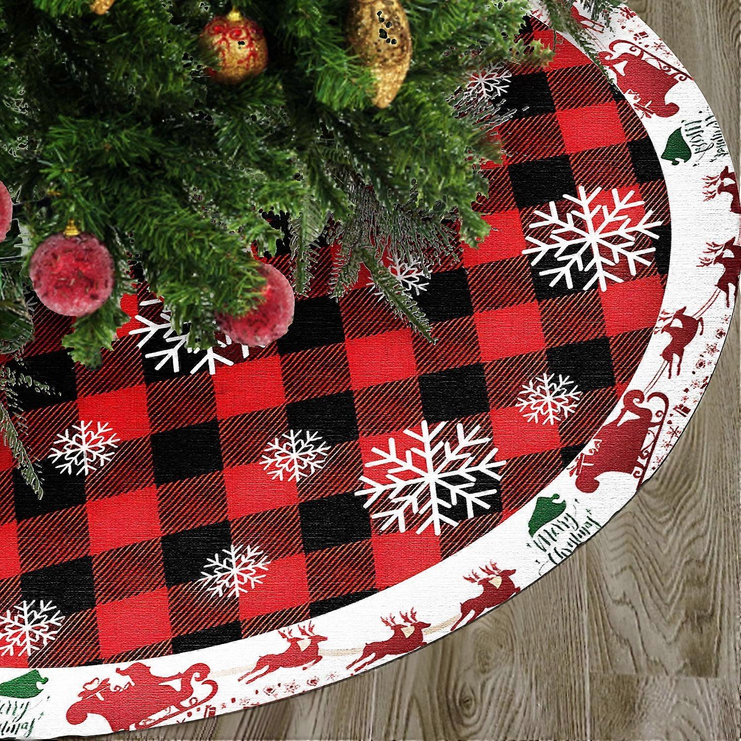 HadinEEon 48 inches Christmas Tree Skirt, Xmas Tree Ornaments, Buffalo Plaid Christmas Tree Mat, Rustic Xmas Tree Rug (Elk & Snowflakes)
