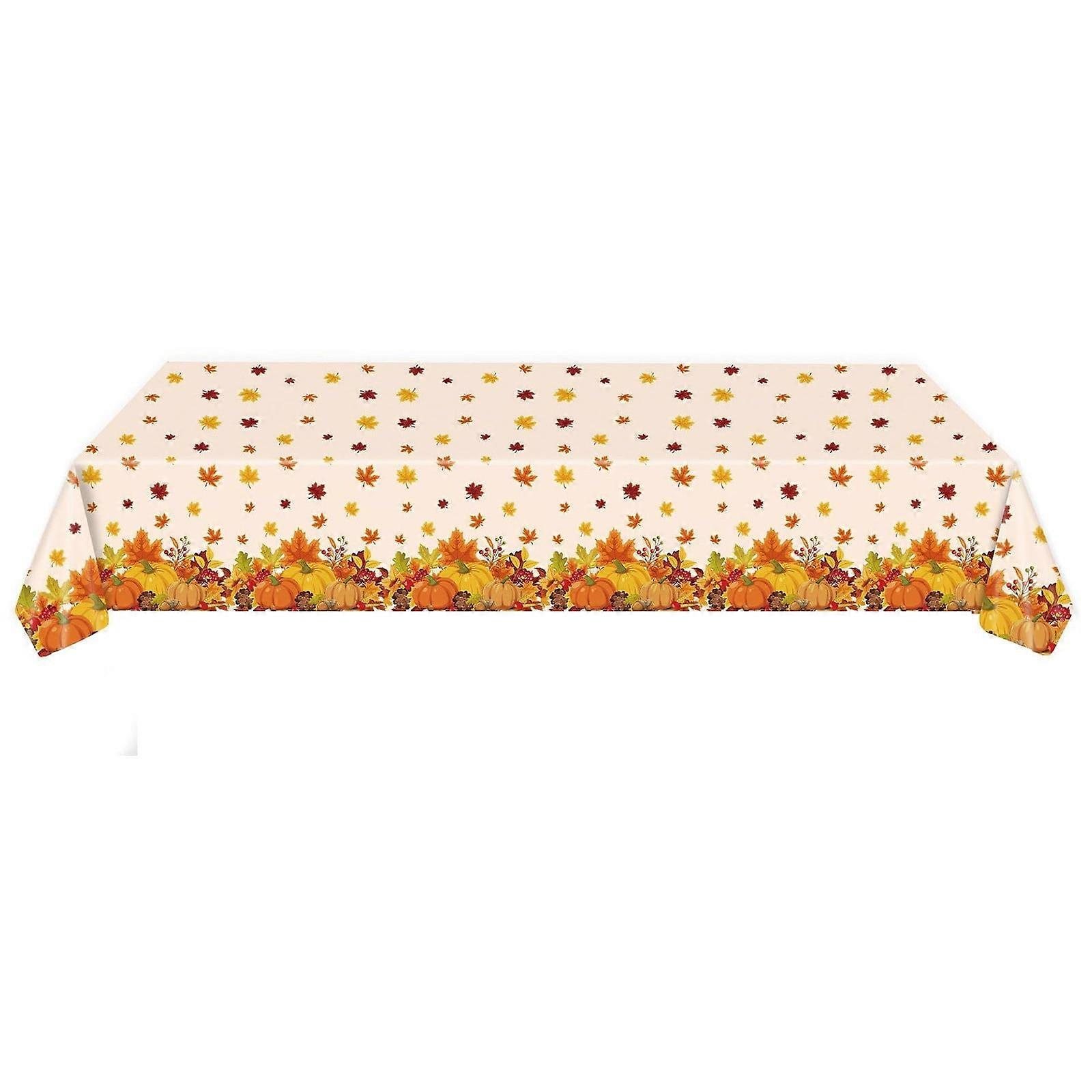 OAVQHLG3B Thanksgiving Tablecloths, Turkey Pumpkin Fall Maple Leaf Design, 54” x 108”, Disposable Plastic Table Cover for Holiday Dinner Party