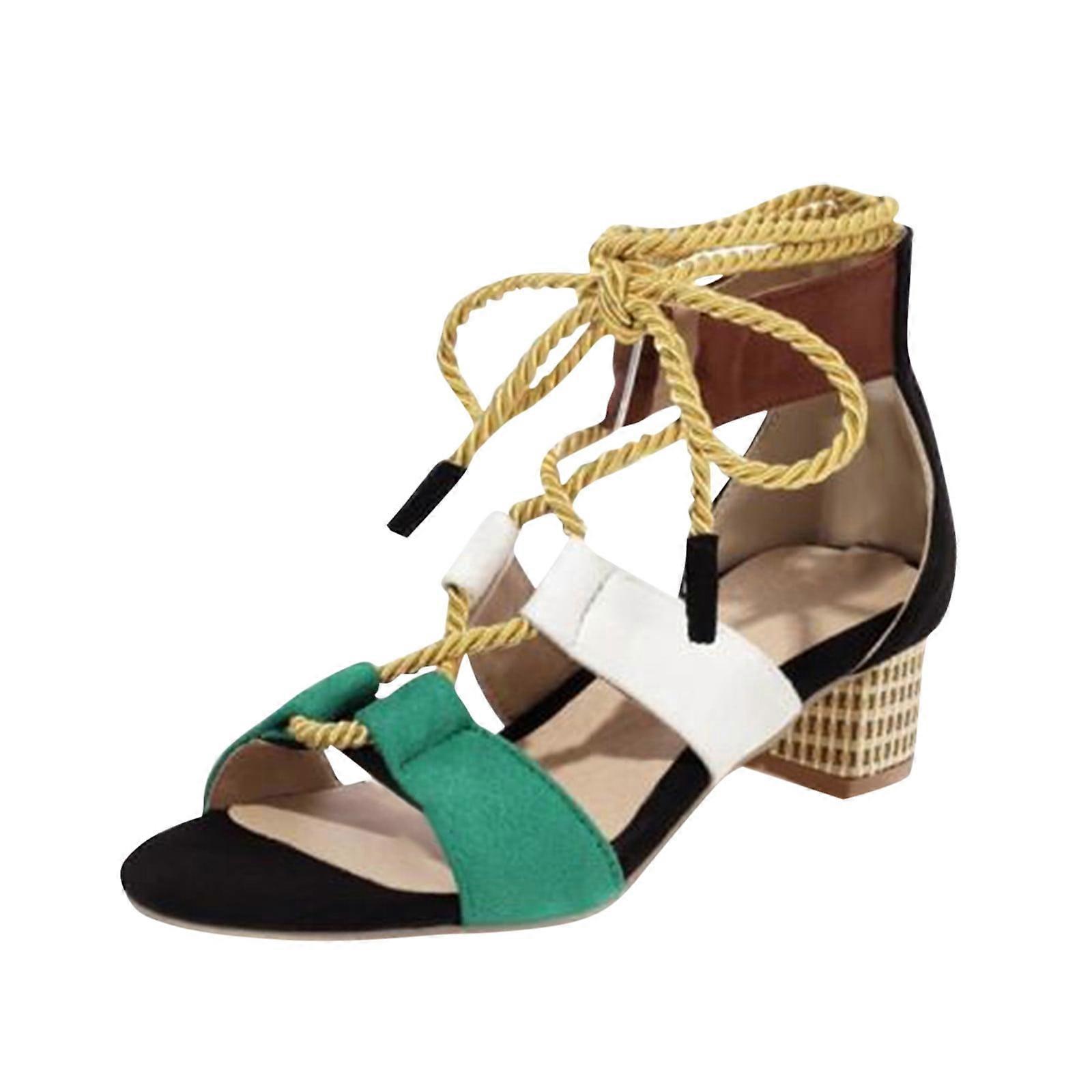 OAVQHLG3B Women's Sandals on Women's Low Heel Fish Mouth Ankle Strap Color Matching Linen Rope Straps Sandals Shoes