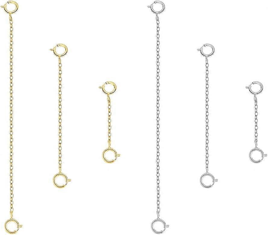 6pcs 925 Sterling Silver Necklace Extender, 3 Sizes, Golden/Silver, Removable Chain for Necklace, Bracelet, Anklet, Jewelry Making, 1-3 inch DIY