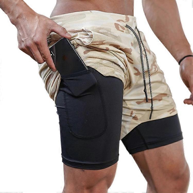 Mens 2 in 1 Sports Running Bodybuilding Workout Fitness Shorts Gym Pants US