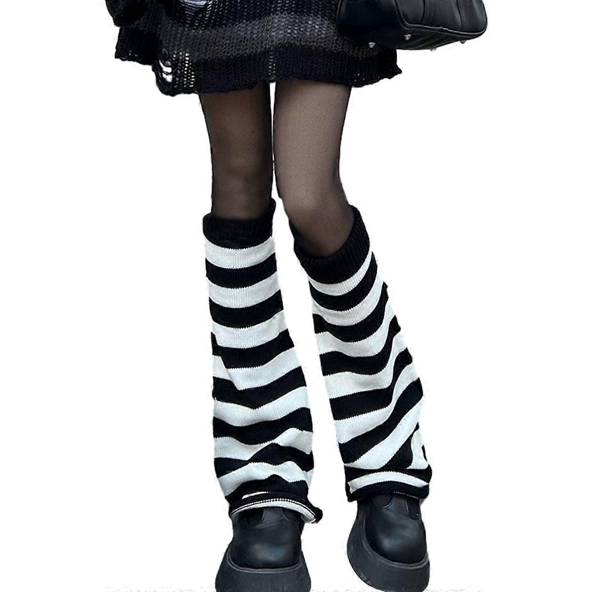 Women's Leg Warmers Fashion Knit Leg Warmers Long Leg Socks Cute Fashion - Black and White Stripe