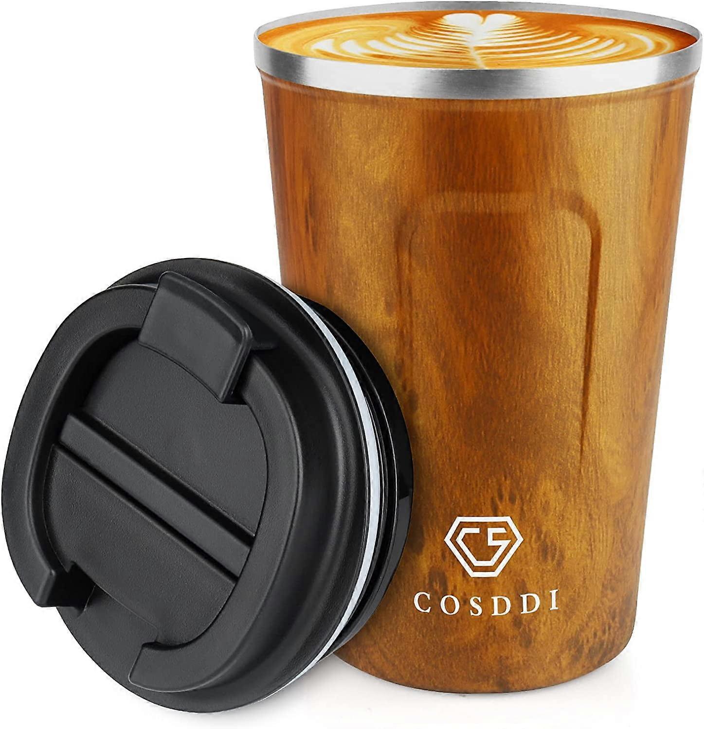 12 oz Stainless Steel Vacuum Insulated Tumbler - Spill Proof Coffee Travel Mug with Lid, Keeps Hot/Ice, Wood Grain (Compatible with Most Cup Holders)