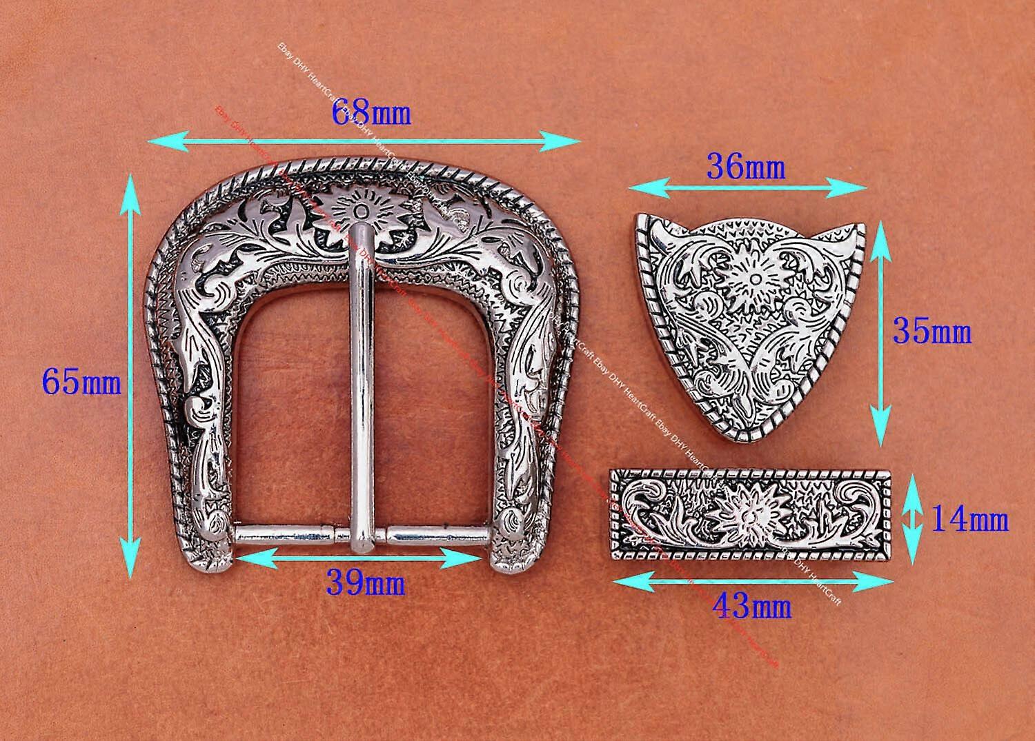 Western Engraved Silver Equestrian Tack Bridle/Halter Belt Buckle 3pc Set 1-1/2"