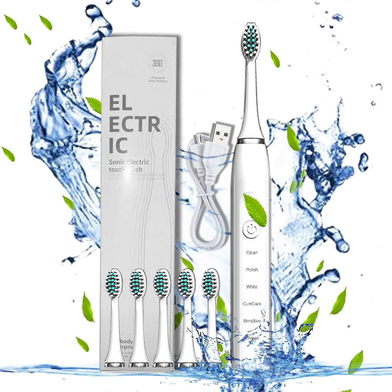 Electric Toothbrush with 6 Heads, 5 Modes, 20-speed Timer, IPX7 Waterproof, USB Rechargeable, compatible with shyuyusa